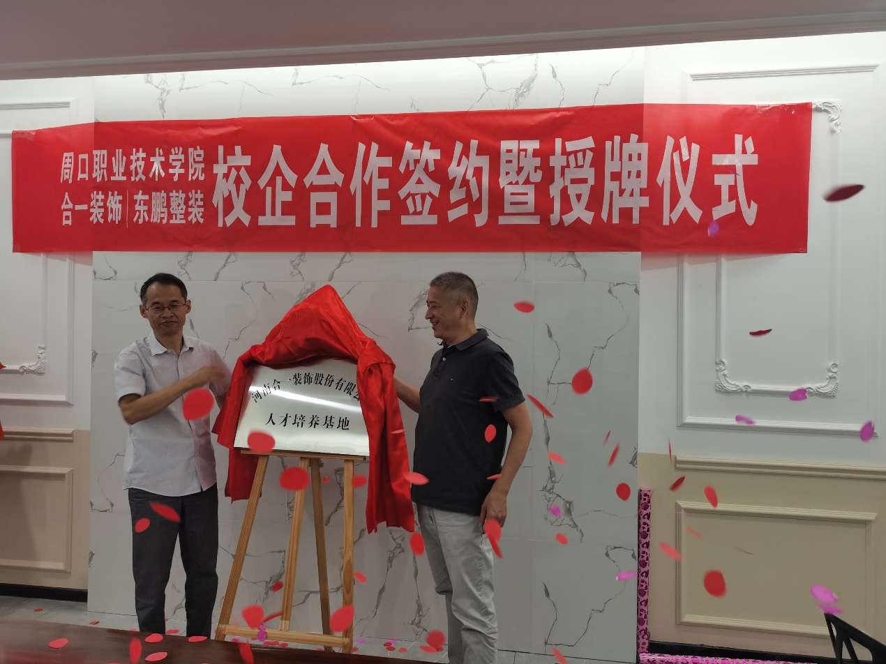9月16日上午,公司与河南合一装饰股份有限公司校企合作签约挂牌仪式在合一装饰公司总部隆重举行。合一装饰董事长李靖、tyc5997太阳集团副董事长李明臣出席仪式,教务处处长付晓东、建筑工程公司党总支书记范伟杰、经理薛洪等相关负责人参加仪式。仪式由合一装饰总监尹雪情主持。