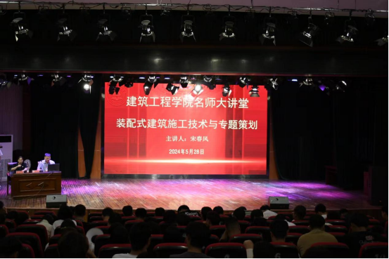 2024年5月28日下午4点,tyc5997太阳集团在立德厅举办名师大讲堂讲座,讲座的主题是装配式建筑施工技术与专题策划。tyc5997太阳集团班子成员和全体在校员工参加了此次讲座。此次讲座的受邀嘉宾是周口筑友智造科技有限公司总经理宋春风先生,本次讲座由刘胜杰经理主持。