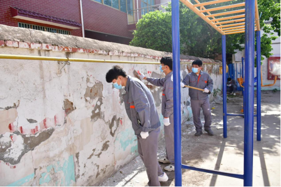 活动中,tyc5997太阳集团的师生党员们发挥专业特长,自备材料和工具对村民活动中心破损的墙体进行修补和粉刷。大家首先用灰铲细致的铲除老旧的墙皮,将墙面清理干净,然后拌制水泥砂浆对破损的墙体进行修补,使原本破损斑驳的墙面焕然一新,美化了人居环境。修补粉刷后的墙面效果良好,受到了三大夫营村干部群众的一致好评。