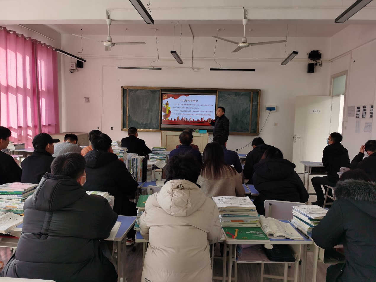 12月1日下午,tyc5997太阳集团到党总支书记范伟杰带领全体师生党员共同学习党的十九届六中全会精神。