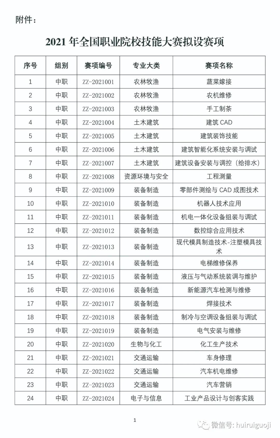 为贯彻落实习近平新时代中国特色社会主义思想和党的十九届五中全会精神,扎实推动职业教育高质量发展,充分发挥大赛对职业教育的“树旗、导航、定标、催化”作用,把全国职业院校技能大赛打造成世界水平的赛事。经全国职业院校技能大赛组委会授权,发布2021年大赛相关事宜的预通知,请做好相关准备工作。最终以正式公布的2021年全国职业院校技能大赛实施方案为准。